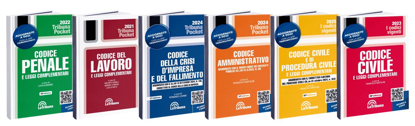 I codici istituzionali e i provvedimenti, comunemente noti come codici, sono disponibili nella loro versione vigente, con annotazioni procedurali per il codice penale e aggiornamenti quotidiani. La precisione e l’affidabilità nell’aggiornamento delle edizioni cartacee sono garantite anche nella versione online.